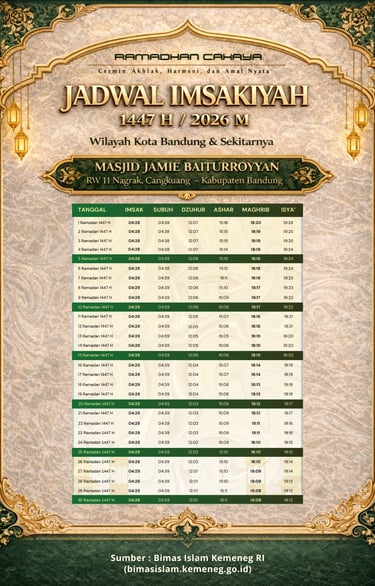 Alhamdulillah, dengan izin Allah SWT kami dapat menghadirkan portal ini sebagai media informasi dan komunikasi bagi jamaah serta masyarakat luas. Melalui situs ini, diharapkan segala kegiatan dan program masjid dapat tersampaikan dengan baik, transparan, dan mudah diakses.