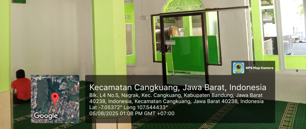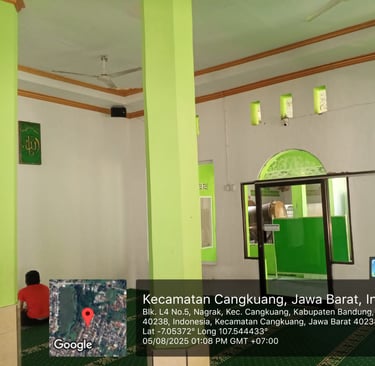 Kegiatan di masjid meliputi sholat berjamaah, pengajian, pendidikan Al-Qur'an, dan santunan sosial.